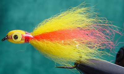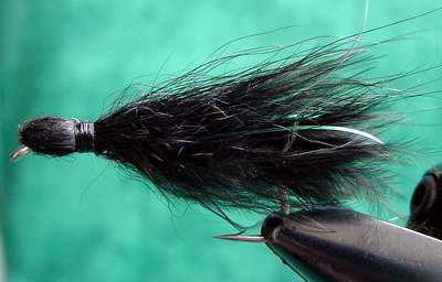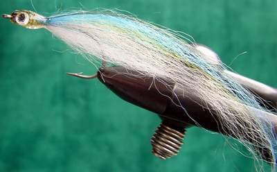 Gebunden mit Ocean-Hair lassen sich in dieser Bindeweise sehr realistische Großstreamer binden, die aber, bedingt durch das steife Material, nicht besonders gut spielen. |
