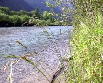 Die tiefen Gumpen und Rinnen der Möll beherbergen mit Sicherheit noch viel größere und stattlichere Fische, so dass mit Grundäschen von bis zu 60 cm sowie großen Raubforellen allemal zu rechnen ist. Doch gehen diese nur ganz selten an die Trockenfliege, so wie es mir hier im vergangenen Jahr ergangen ist, als ich an einer schwierigen aber vielversprechenden Stelle an drei Tagen hintereinander zwar jedes Mal einen großen Fisch haken konnte, dieser mir aber stets nach kurzem Kontakt die Fliege einfach abbiss. |