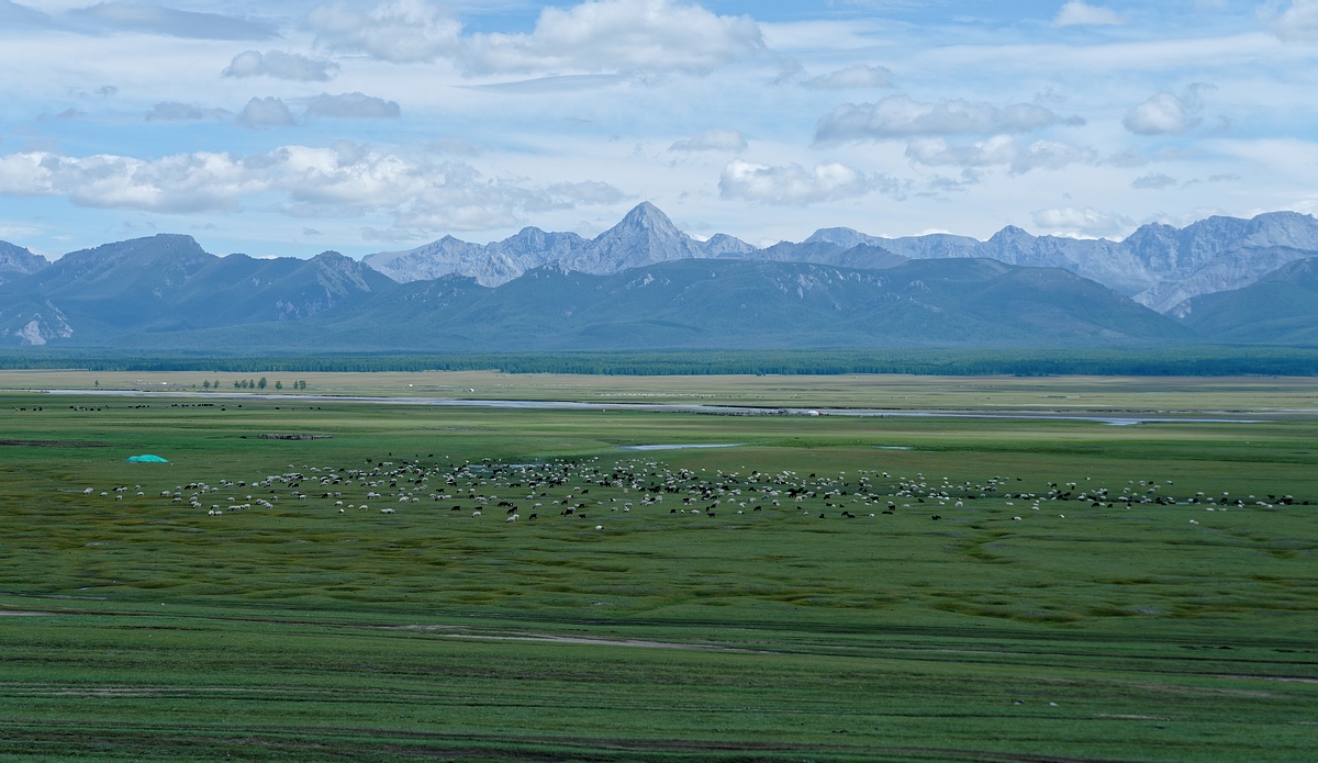 | Das Becken wird im Osten durch die schroffe Horidol Saidag Kette und im Norden und Westen durch die bis deutlich über 3000 m hochragenden Gipfel des Ostsajangebirges geprägt. Mitten durch diese wilde Berglandschaft schneidet der Fluss Shishkhid, der aus den Seen im Zentrum des flachen Beckens fließend auf mehr als 80 km Länge Richtung Westen in die autonome russische Republik Tuwa führt und dort Kleiner Jenissei genannt wird. Am Rand des Darhad-Beckens geht die mongolische Steppe in eine geschlossene Lärchentaiga über, welche die riesigen Weiten Ostsibiriens fast bis hoch ans Polarmeer bedeckt. Nirgendwo ist die Mongolei wilder, und auch nirgendwo ist sie „sibirischer“ als in diesem abgelegenen Eck. |