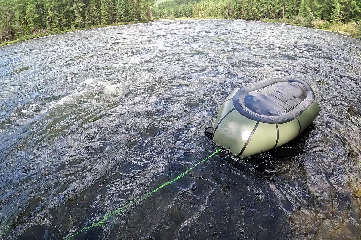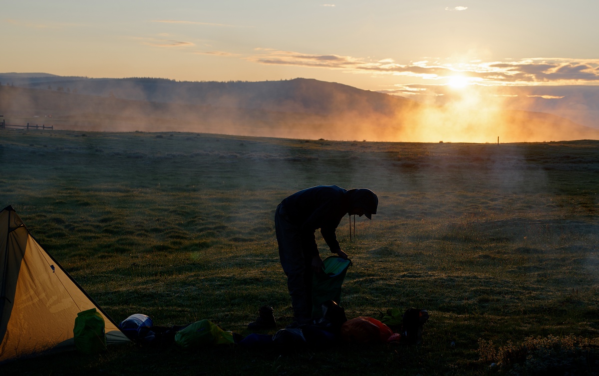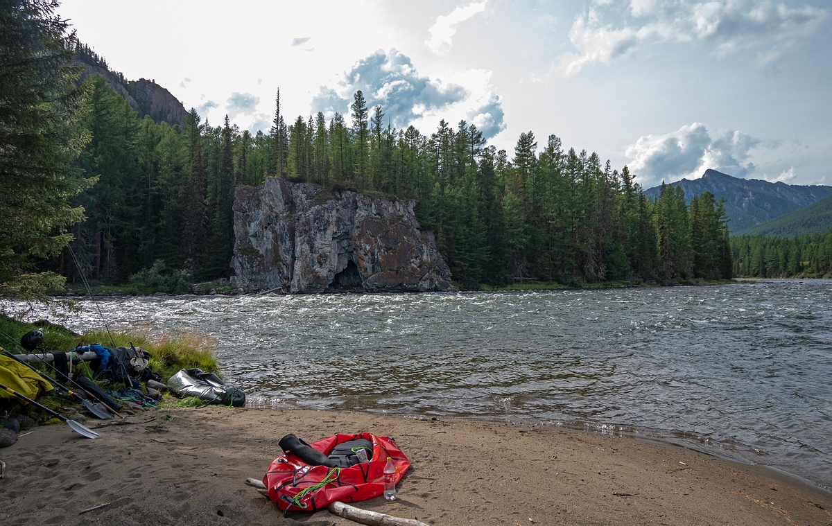 Die erste Zeltnacht in der Stille der Steppe wird ein reiner Genuss, am nächsten Morgen sortieren wir unsere sieben Sachen und beladen die Boote. Erstmalig werden wir auf dieser Tour Packrafts mit „internal storage“ System verwenden, wobei es sich schon um eine geniale Sache handelt. Die Luftschläuche können am Heck mittels luftdichtem Reißverschluss geöffnet werden, sodass links und rechts ein großer Packsack im Bootsrumpf untergebracht werden kann. Der dadurch tiefliegende Schwerpunkt unterstützt eine stabile Lage des Boots im Wildwasser, und die Beladung des auf das Boot geschnallten Rucksacks reduziert sich auf Gegenstände, die rasch greifbar sein sollen. |