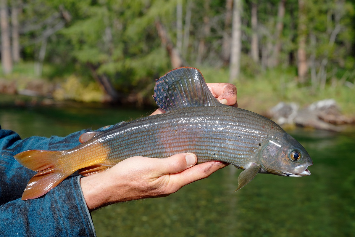 | Bei den Äschen hier handelt es sich um die „Gelbschwanzäsche“ (engl. gold-tailed grayling, Thymallus svetovidovi), die in der Mongolei nur hier im kleinen Einzugsgebiet des Jenissej vorkommt. Diese besonders schöne Äschenart wurde erst 2009 vom russischen Wissenschafter Igor Knizhin gemeinsam mit dem amerikanisch-österreichischen Kollegen Steven Weiss formal erstbeschrieben, und zwar anhand von Material, das ich 2007 im Fluss Sharga im nördlichen Darhad Becken gesammelt habe. Sie gehört zur Gruppe der Arktischen Äschen im weiteren Sinne, von denen es in Nordasien etwa 10 mittlerweile als Arten beschriebene Formen gibt. Das Gebiet der Mongolei entwässert im Wesentlichen in 4 Einzugsgebiete großer Flüsse die nach Russland fließen, und in jedem davon lebt eine andere dieser Äschenarten. Darüber hinaus findet man im abflusslosen zentralasiatischen Becken im Altai die Mongolische Äsche (Thymallus brevirostris). |