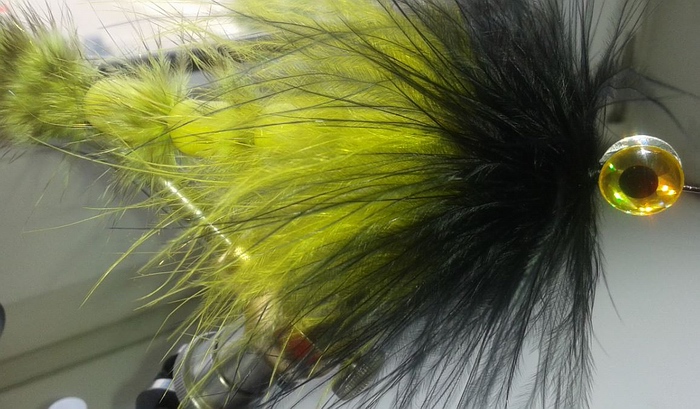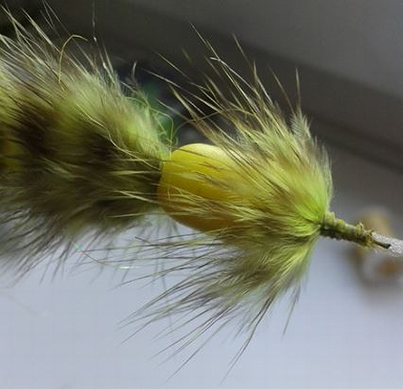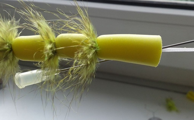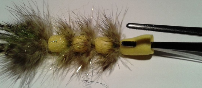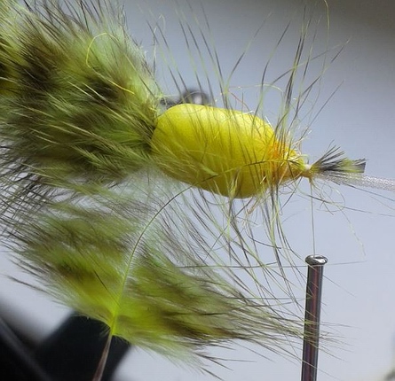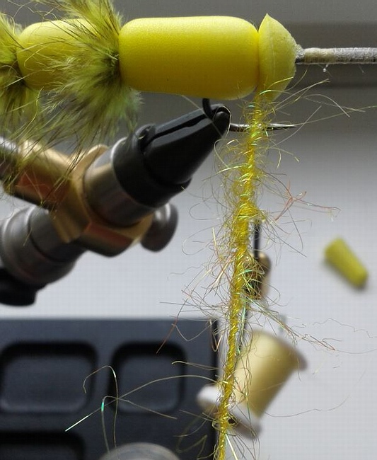 | ... mit gelben und grünen, langfaserig gemischten Mikael Frödin SSS-Dubbing überbinden. | ![]() |