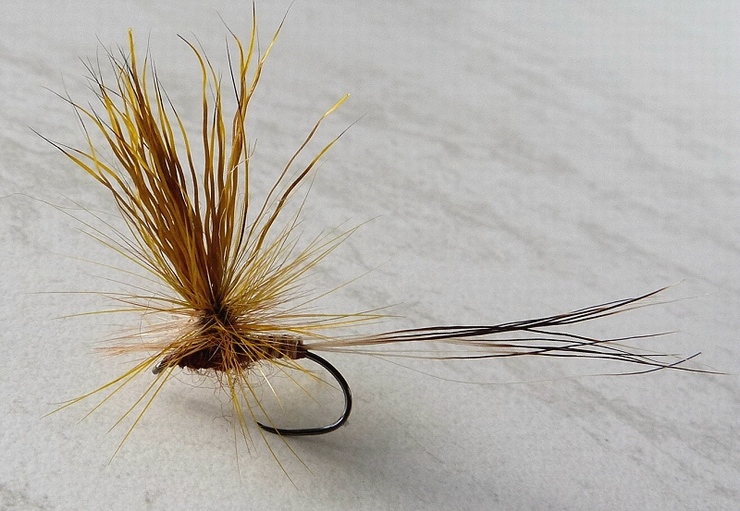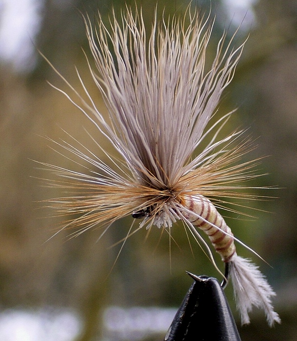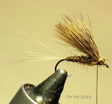 Abend beim Bindetreff hab ich etwas rumgespielt mit den Grundideen der "Fragile Darters" von Hans van Klinken und den "Crazy Sedges" von Leon Links ... Nicht als Köcherfliege, sondern als Dun (der "neuen" Marchbrown - nein nicht wirklich ...). Merkmale: