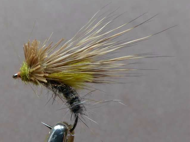 Deerhair dry Ein recht simpel aufgebautes und lange bewährtes Muster aus: Sattelhechel, Moose (is auch fast bissl wie Reh, Mike ) und eben hinter der Hechel ein paar Spitzen REHHAAR, als Schwimmhilfe, Flügel, what so ever... sozusagen. Greez D. Black ;-) |