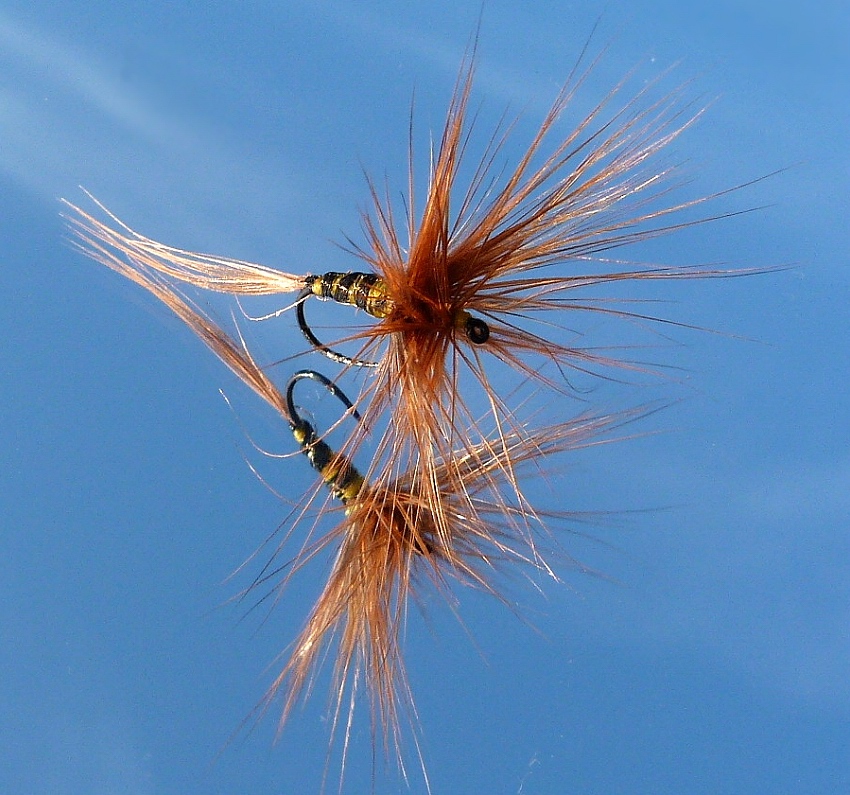 | Wohingegen sowohl die Behmfliegen (Link) + (Link) als auch der Emmerbäse (Link) oder einige andere alte Fliegen aus dem Jura (Link) vermutlich Aimé Devaux beeinflußt haben und wie immer „Erfindungen“ meist auf Erfahrungen von anderen aufbauen ... Nur sind eben die Devaux-Fliegen dann weltberühmt geworden. |