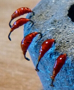 *) Ich habe das in diesem Fall so gemacht, weil ich dachte: das wird schön transparent und die schwimmen dann besser. ABER, das Wachs bleibt klebrig und bröselig und die Fliege ist schwer weiter zu verarbeiten. Ich würde jetzt eher einen Überzug mit UV-Lack bevorzugen ... |