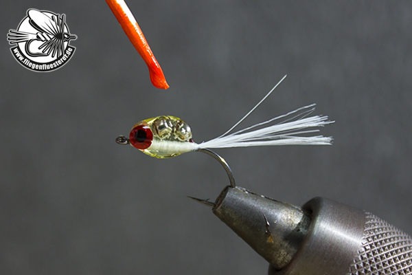 Mit Nagellack den Dottersack auftragen. |