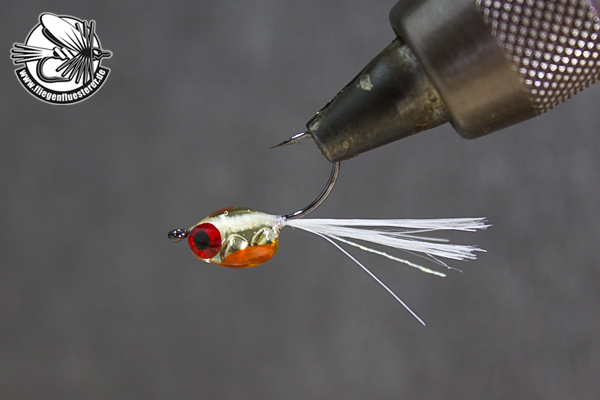 Schwanz einkürzen und Bindefaden wieder zurück zur Hakenspitze führen. |