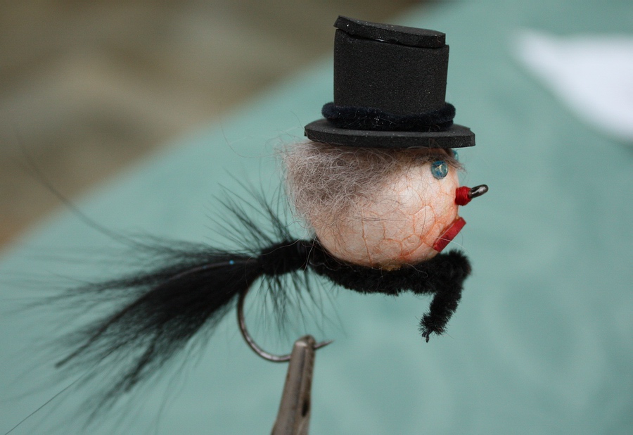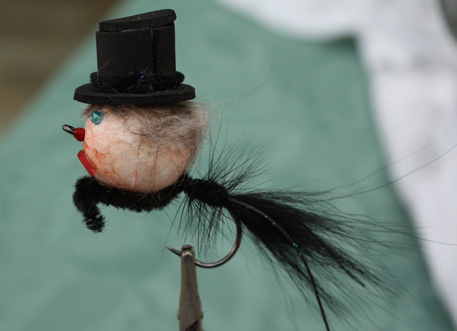 Ebenezer Scrooge Popper (kurz ESP Fly) von Paul Riedel (grayling-attraktor) Er schreibt dazu: "Dieses Jahr möchte ich euch den Ebenezer Scrooge Popper (kurz ESP Fly) vorstellen. Aufgrund ihrer unfreundlichen Art und ihres unliebsamen Auftretens fängt diese Fliege besonders gut zur Weihnachtszeit! Schließlich lässt sich niemand gerne das Weihnachtsfest vermiesen... Glaubt ihr nicht? Fragt Charles Dickens!" Diese Fliege ist 9 cm lang, verbunden wurden auf großem Haken u.a. Hechel- und Haarmaterial, Foam, Chenille, Rubber Leggs, Glasperlen, Dubbing und eine Kopfkugel ... Saubere Sache !!! |