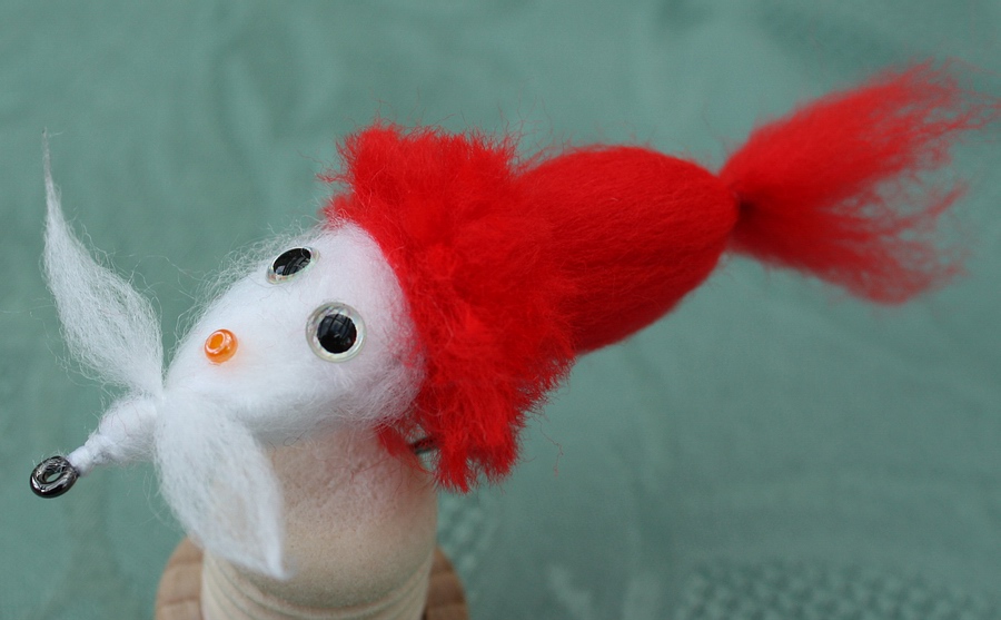 braunem Floss umwickelt. Die Augen sind aus angeschmolzenem Mono gefertigt