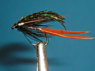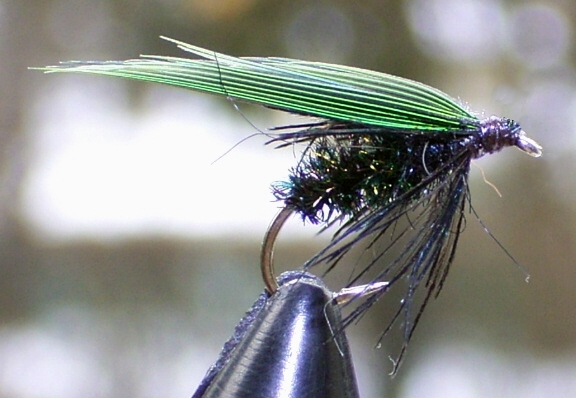 Nassfliege, d.h. halbierte Hennen-Hechel. Schwänzchen: Goldfasan Brustfeder Faden: Schwarz Körper hintern: Floss, gelb Körper vorne: Pfauengras Hechel: Furnace Henne resp. Hahn TL, Norbert PS: FF&FT July 2017. In der Tat hat Davie McPhail