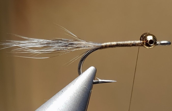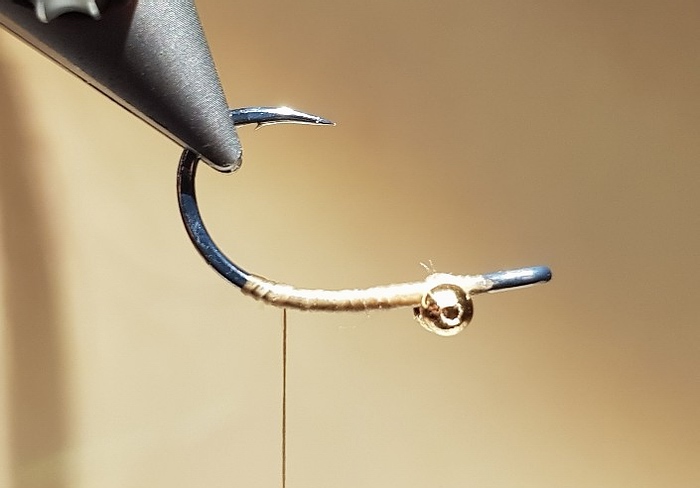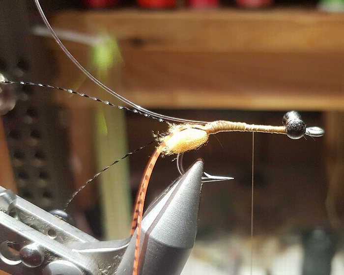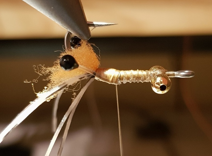 7. Dubbing Körper verdrallen und bis knapp hinter die Augen einbinden |