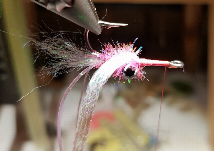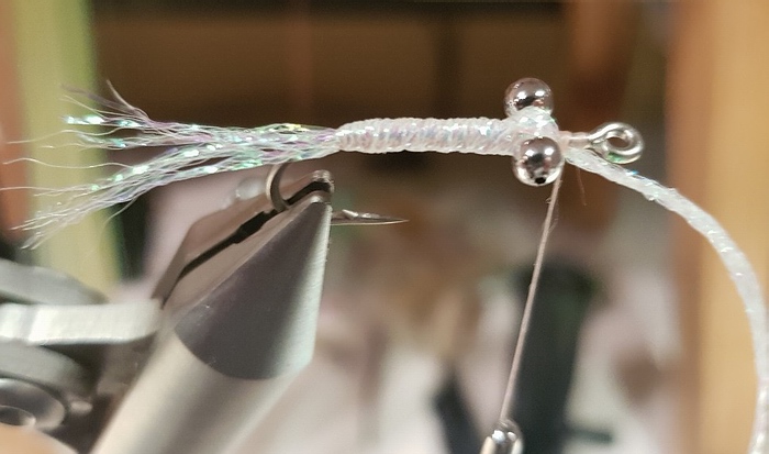 UTC 140 TMC 811S Kettenaugen Craft Fur SLF Saltwaterdubbing Sililegs Krystalflash Easy Shrimp Eyes Bindeschritte: 1. Kettenaugen