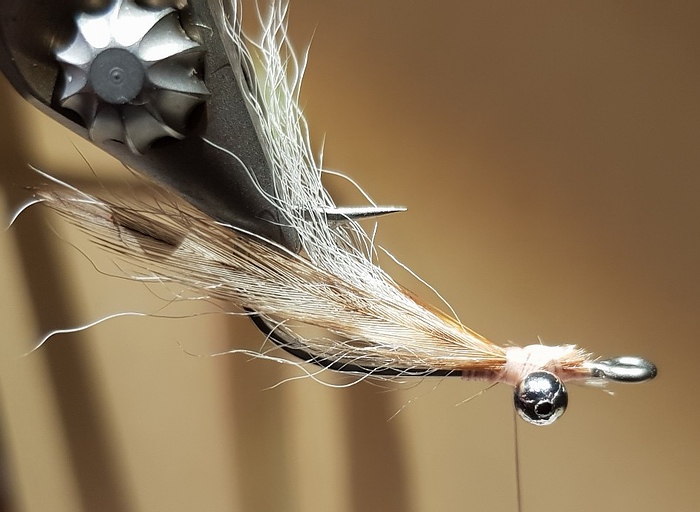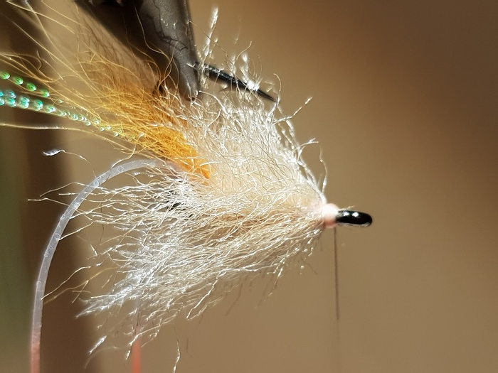 UTC 140 Owner Flyliner Dumbbell Eyes 20lb Hardmono UV Kleber thin Craft Fur Sililegs Flat Diamond Braid Grizzly Hechel Pro Sportfisher Saltwater Angelhair Bindeschritte: 1. Craft Fur am Hakenbogen einbinden |