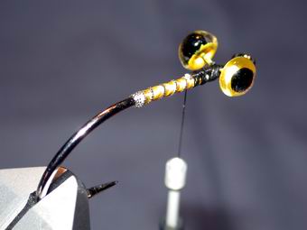 Dubbingstrang wird jetzt der Teil des Kopfes hinter den Glasaugen gebunden