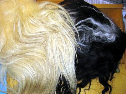 Oben und unten werden weiße und schwarze Heidschnuckenbüschel eingebunden, die Spitzen der Büschel in Richtung Hakenöhr... |