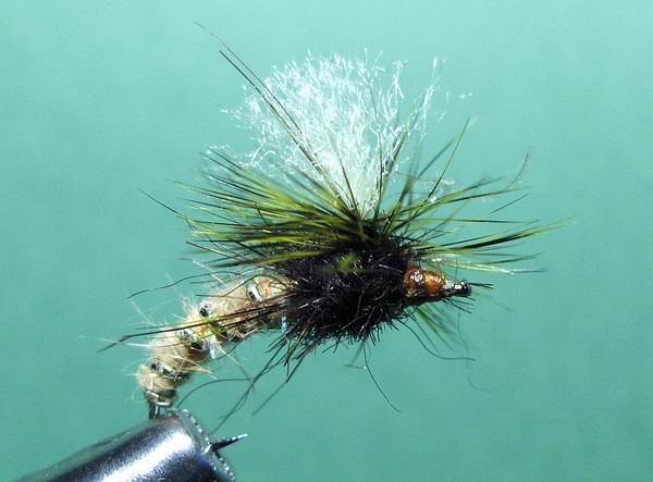 Als Körpermaterial verwende ich gern Dubbings, Fibern vom Fasanenschwanz oder Kunststoffe wie Swanundaze. Wuschel Fallschirm |
