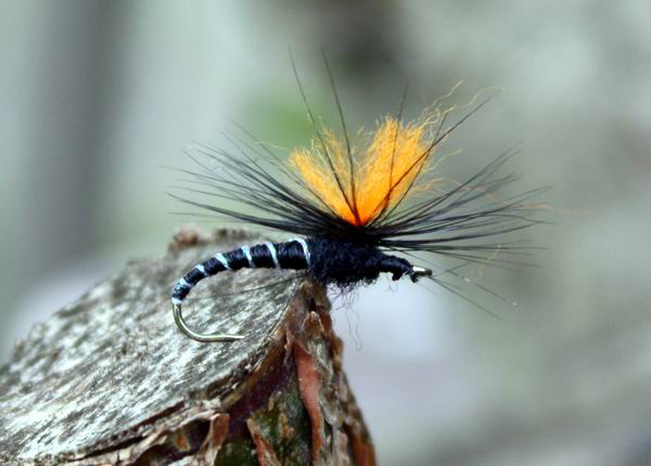 1. Haken einspannen, Grundwicklung legen, Faden bis in den Bogen führen 2. Rippungsfaden einbinden, Hinterkörper formen, bis ca. 2/3 des Haken belegt sind 3. Hinterkörper rippen und Faden abbinden 4. Sichthilfe in der Hälfte des vorderen Drittels einbinden 5. Nun eine passende Hechel einbinden 6. Jetzt den Thorax bilden den Faden bis vor das Öhr bringen 7. Hechel um die Sichthilfe winden und abbinden 8. Kopf formen und Abschlussknoten setzen, Kopf lackieren Viel Spaß beim Nachbinden und fangen! Tight Lines - ES |