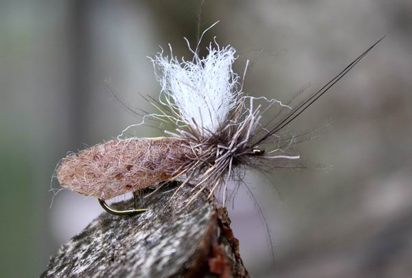 Diese Fliege ist hier im Spessart ausgesprochen fängig, auch im Stillwasser. Sie kann in verschiedensten Farbvarianten gebunden werden. Sehr bewährt haben sich die Kombinationen Rot/Braun, Braun/Schwarz und Creme/Blue Dun. |