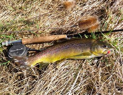 Haken: weiter Hakenbogen # 4 – 8 Bindefaden: Uni Thread tan 8/0 Schwanz: synthet. Marabaou, rot Beschwerung: Elastic Tungsten Körper: Glo Yarn 1300 weiß Rippung 1: Uni Mylar Pearl #16 Rippung 2: Floss rot Rücken: 3-5 Pfauenfibern Augen: Klebeaugen Köpfchen: UV clear fly finish loon Siehe dazu auch: www.christianschmidt-augsburg.de/ fischen_bindenElritze.htm Zum Moonsault: www.christianschmidt-augsburg.de/ fischen_bindenmoonsault.htm Erfolgreich waren beide, der „Moonsault“ mehr für die frisch-besetzten, die Elritze auch gerne für die „alten“ Forellen... (siehe unten) (Ich glaub, das nennt man „klöppeln“ ...) => |