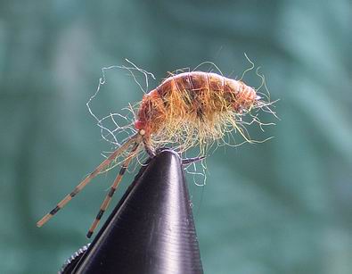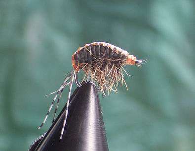 Nicht so sehr meine Sache, sie geben aber natürlich eine gute Form vor. Ich habe alles mögliche damit ausprobiert, das Umwickeln der Körper mit Dubbing und Scud-back etc. scheint mir aber einfach zu dick und voluminös (so schaut ein Flohkrebs einfach nicht aus!). Das beste ist wohl, den Körper als diesen auch zu verwenden, ggf. zu bemalen oder mit BugBond (UV loon o.ä.) zu überziehen. Also: Grundwicklung, Schwänzchen, Rippung aus Draht oder Monifil, Hechel aus Hahn / Henne / Emu / Hasengrannen oder Dubbing, ggf. Fühler, Runterbürsten, Körper mit Sekundenkleber fixieren, Rippen, abbinden, Ausbürsten. Einfach, schnell, effektiv, (etwas langweilig). |