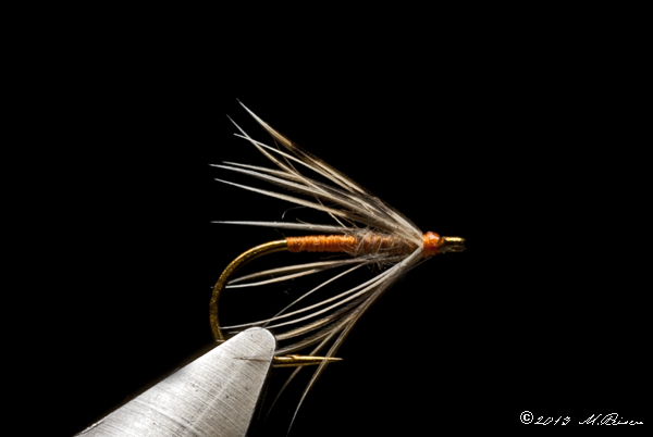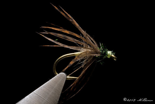 Die spezielle Vorgabe für dieses Thema lautete: #12er Haken z.B. B170, B175, Partridge Classic Spider, TMC102Y, Partridge THD, Mustad S80NP-BR, kurzschenklig musste er sein. Es durfte kein Rebhuhn verwendet werden. Alle klassisch angelehnten Spider Muster waren erlaubt und es mussten jeweils 5 gleiche Fliegen je Teilnehmer gebunden werden. (Hinweis: Bitte nicht über die Namen der Teilnehmer wundern: hier wurden wie immer die User-Namen aus dem FF-Board verwendet). |