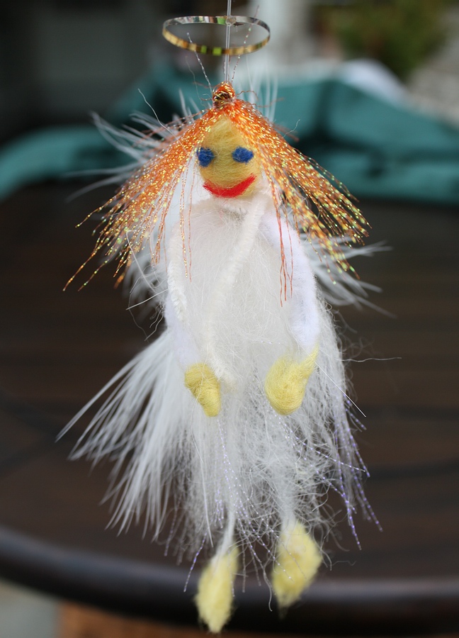 Platz 4 belegt der Anna Angel – the pike smasher – und kommt von Paul Riedel Dieser lächelnde, rotblonde Weihnachtsengel ist 14 cm lang und kommt aus einer bunten Materialkombination aus Flash, Chenille, Marabou u.a. Damit Er bzw. Sie nicht friert, trägt sie Handschuhe, dicke Pantoffeln – und einen Schaal! Auch echte Flügel und der Heiligenschein wurden nicht vergessen. |