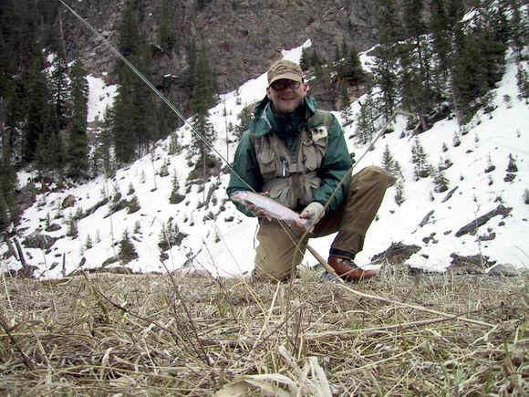 ein seltener groesserer Fang einer Regenbogenforelle aus dem eiskalten