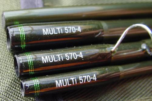 Die MULTi gibt es in insgesamt 15 verschiedenen Modellen. Bis auf eine Ausnahme sind alle Ruten vierteilig. Das Spektrum reicht vom leichten Einhand-Modell, Schnurklasse #2 und Länge 8'0", bis hin zur 15'0" Zweihänder für Schnurklasse #10-11. In diesem Testbericht befassen wir uns mit der für 2008 neu hinzugekommenen MULTi - MUL570-4 (#5 - 7'0" - vierteilig), der spritzigen Bach-Rute dieser Serie. Ausstattung