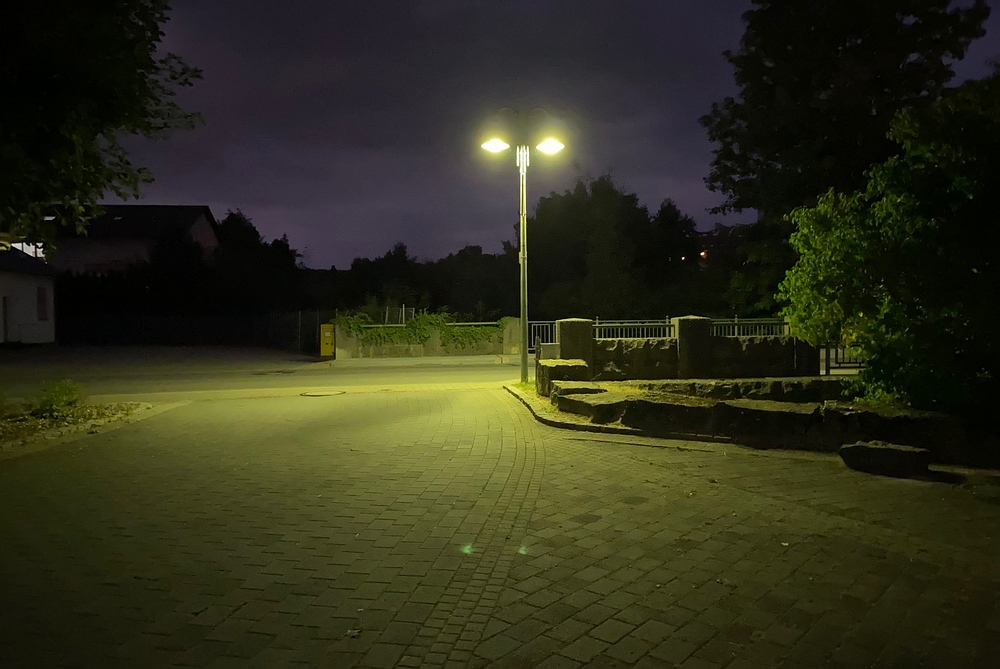 Licht der Straßenlaterne an der Brücke reicht aus, um diesen