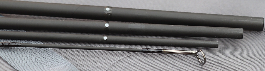 Teilung und Maße: Vierteilige Fliegenrute, Länge 9'1" (zusammengesteckt und nachgemessen 277 cm), vier nahezu gleichlange Teile a. 73 cm Länge (Handteil 1 cm länger). Das Gewicht der Rute beträgt 79 Gramm. Auf der Rute angegebene Schnurklasse: #5, Wurfgewicht 10g+. Blankdurchmesser über dem Griff: 8,2 mm, Blankdurchmesser an der Rutenspitze: 1,6 mm. Länge Transportrohr: 78,5 cm, Gewicht Transportrohr (leer): 445 Gramm. Ausstattung: Schlanker, matter Blank in Dunkelgrau aus hochmodulierter Kohlefaser + Graphen (einschichtige Graphenkristalle mit zweidimensionaler Struktur: Materialinfo). Die Verbindungen der Einzelteile wurden als exakt passende Überschubverbindungen ausgeführt, die oberen Enden der Ruteneinzelteile wurden gegen das Eindringen von Schmutz und Wasser abgedichtet. |