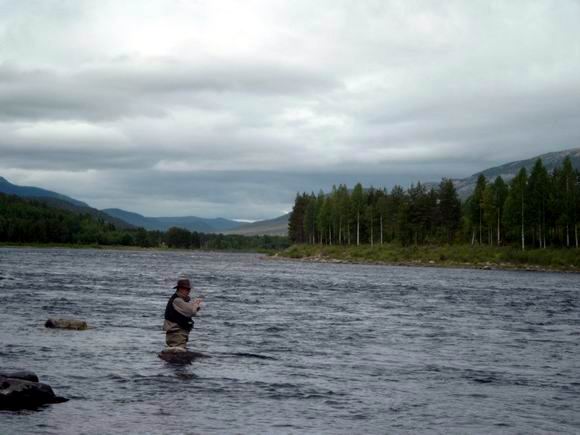 Die Glomma bei Atna. Michael hart an einer Äsche...