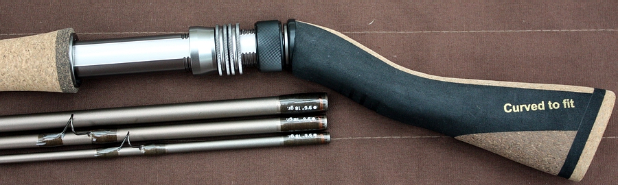 Die vorliegende Rute kommt in einem sehr angenehmen metallischen Bronze-Ton, alle Komponenten sehen sehr gut aus und wurden farblich passend aufeinander abgestimmt, inklusive dem hervorragend zur Rute passenden, starken Rollenhalter. In Sachen Ausstattung und Verarbeitungsqualität ist alles korrekt, die gesamte Verarbeitung, einschließlich der Qualität der Bauteile, der Ringanordnung-, Ausrichtung- und Anbringung sowie der Lackierung wurden tadellos erledigt. Der Griff kommt bei dieser Salzwasser-Fliegerute kompromisslos in hochfestem Composite Kork: erfahrene Küsten- und Flat-Fliegenfischer wissen aus eigener Erfahrung, dass dies die einzig dauerhaft haltbare Grifflösung ist, denn bei der besonders harten Beanspruchung beim Meeresfischen bröckelt irgendwann jeder Naturkork an den Problemstellen (Druckpunkten...). Das kann bei dieser Rute nicht passieren! Der Griff liegt gut und sicher in der Hand und der zuverlässige Rollenhalter mit seinem 35 mm langen Gesamtschraubweg mit Doppelmutter hält jede Fliegenrolle bombensicher. Die tadellos passgenauen und tiefgehenden Überschubverbindungen v.u.n.o. gemessen 73, 66 und 69 mm ineinander und halten die Rute sehr sicher zusammen: auch nach stundenlangem Fischen an der Küste konnten wir keine ungewollte Lockerung der Einzelteile feststellen. Punktmarkierungen únd die Typenangabe an allen Einzelteilen vereinfachen die Ausrichtung beim Zusammenstecken und verhindern ein eventuelles Verwechseln von Rutenteilen verschiedener Ruten. |