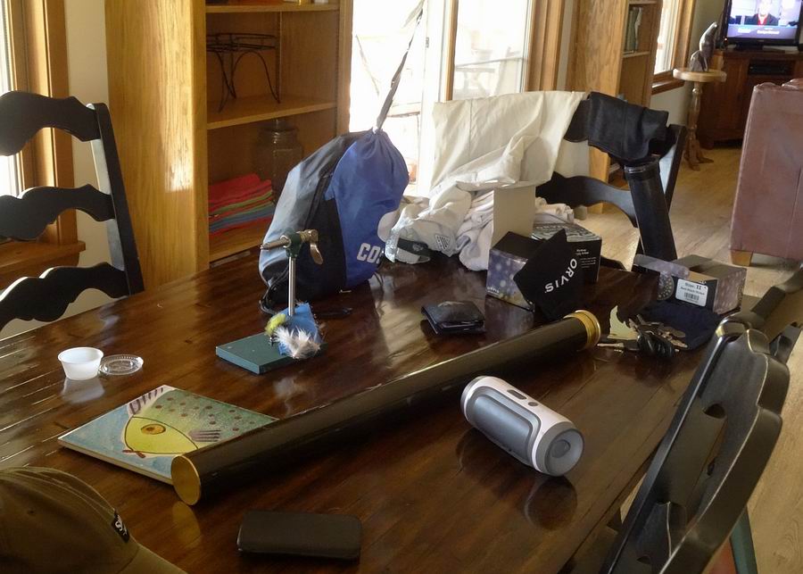 Je näher wir unserem Ziel kamen, wurde es immer abgeschiedener, bis ich schließlich keinen Handy-Empfang mehr hatte. Zudem war es stockfinster, da wir, nachdem wir eine Stunde im Walmart verbracht habe, erst um 22:30 Uhr in unser Unterkunft eintrafen. Adam, unser Präsident, hat diese Unterkunft ausgesucht, nachdem er schon die letzten Jahre mit dem Club dort war. Ich muss sagen, er hat einen ausgezeichneten Job gemacht! Als wir das Haus betraten, waren wir sprachlos. Es war riesengroß und äußerst gepflegt mit Liebe zum Detail! Überall gab es Fliegenfischerdeko und nützliche Sachen. Das Haus von innen... |