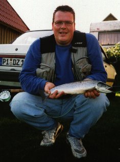 ein Foto von mir schicken. Das bin ich mit einer schönen Meerforelle