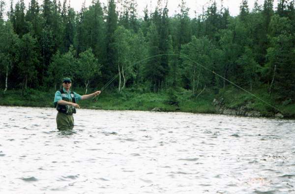 Na endlich - hängt bei mir auch 'mal einer... Aufgenommen am nordschwedischen Vindelälven im Sommer 2001. Foto und Copyright: