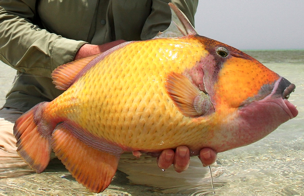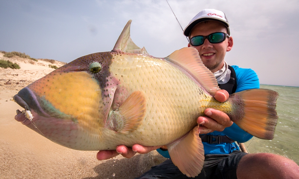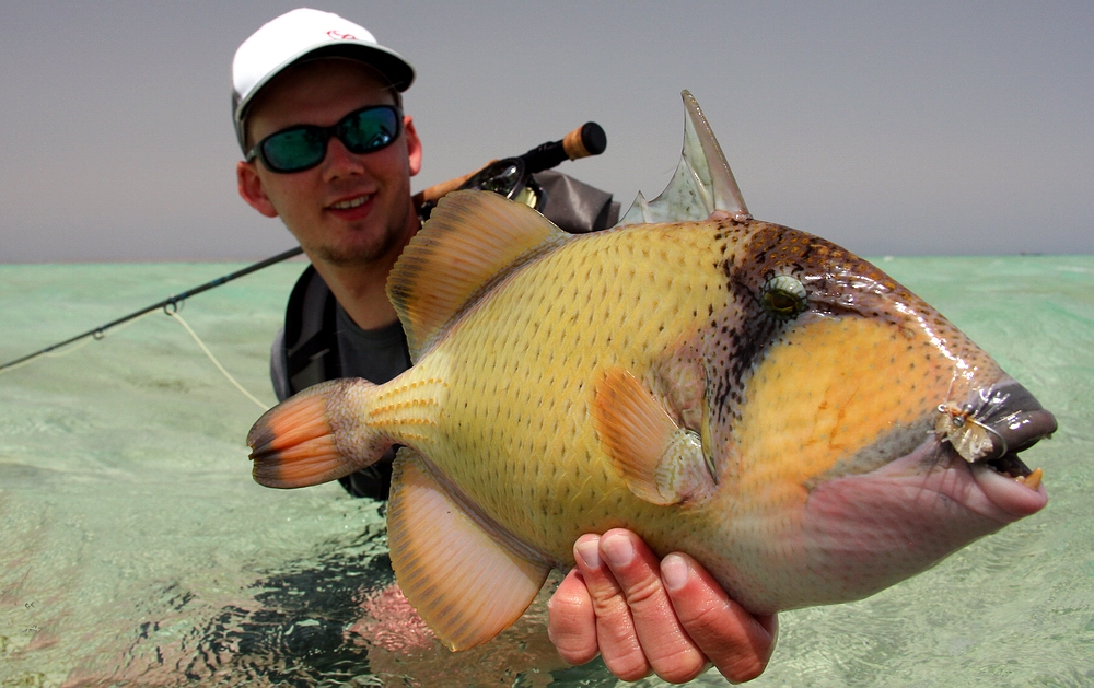 Fliegen und Vorfächer. Mein erster Titan Triggerfish ist gleich ein