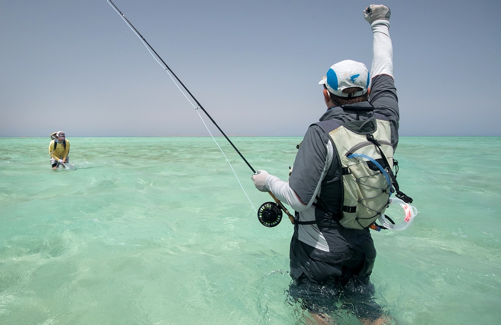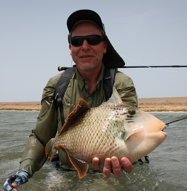 | In den Sudan? Zum Fliegenfischen? Jetzt drehst du wohl völlig durch...! Das waren noch die freundlichsten Reaktionen meiner heimischen Fliegenfischerkumpels, als ich von meinem Plan erzählte, den Sudan zu bereisen. Angefüttert durch einen kleinen Artikel in einer FF-Zeitschrift, in dem auch noch der Name eines alten Bekannten auftauchte, reifte in mir über Monate der Entschluss: da muss ich hin – und zwar so schnell wie es geht! Ein Anruf bei Lutz machte die Sache nicht besser: erstmals in der Geschichte sollte eine deutsche Gruppe mit sechs Fliegenfischern Mitte Mai 2015 diesen Trip machen – und ein Platz war noch frei. Die „familiäre Freigabe“ kam erstaunlich rasch, damit erledigten sich auch noch die letzten Bedenken und so war es besiegelt: ich fahre in den Sudan, auf die fantastischen „nubischen Flats“! Kernziel dieser von einem Mutterschiff im Roten Meer aus operierenden Tour war das anspruchsvolle und spannende Flat-Fliegenfischen auf tailende Titan- und Yellow Margin Triggerfish, ebenso scheue wie kampfstarke Gesellen. Die Spannung wurde beträchtlich dadurch erhöht, dass auf den Flats jederzeit Bluefin Trevally, Barracuda, Milkfish, Bonefish und meterlange GT auftauchen konnten, um einen sozusagen „den Tag zu versüßen“… |