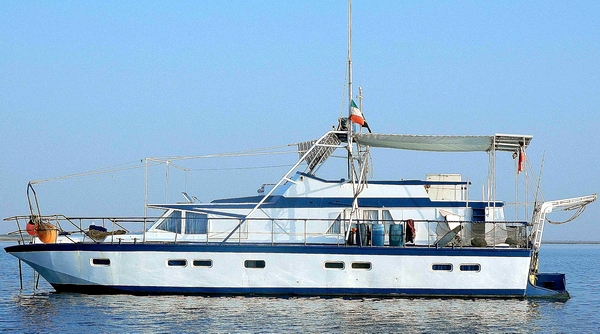 Mutterschiff ist ein schon betagtes 18 Meter Katamaran-Boot aus den 60ern,