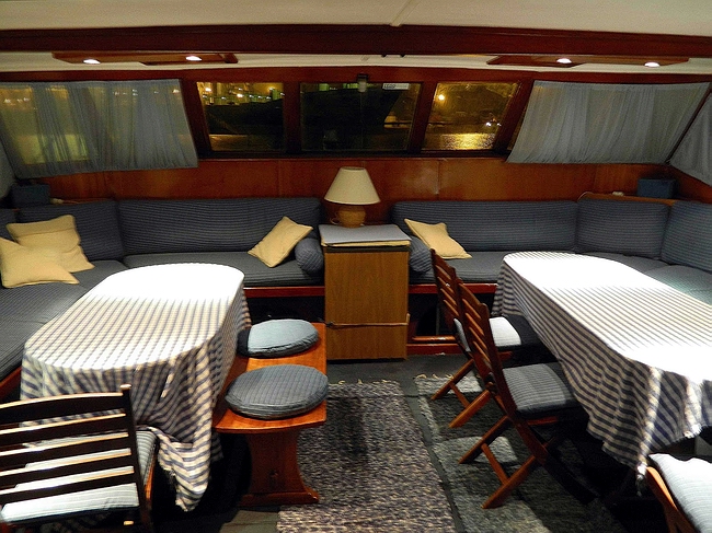 herum, das Vorderdeck ist als Sonnendeck nutzbar. Im Innenraum befinden