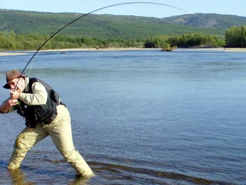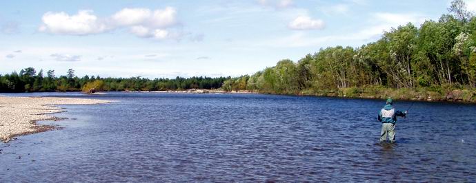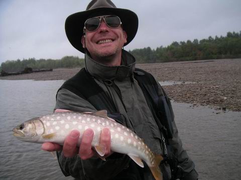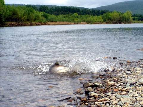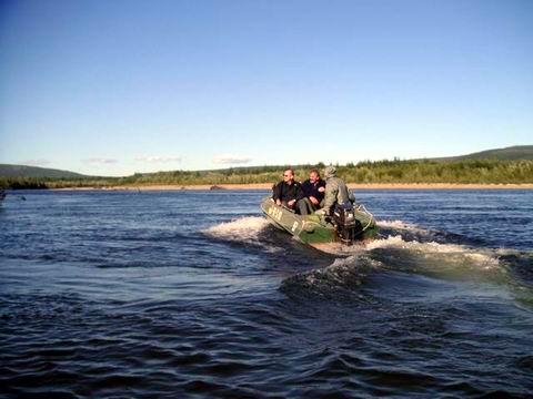 28.08.: Robert bringt uns heute zunächst an einen Platz, der ein ganzes Stück stromabwärts liegt. Schließlich sollen wir die ganze Strecke kennen lernen. Für ihre Kuchtui-Strecke von ca. sechs Kilometern Länge besitzen Robert und Irina übrigens alle behördlichen Genehmigungen, um diese als ihre Privatstrecke, sogar mit eigener Fangquote, nutzen zu dürfen. |
