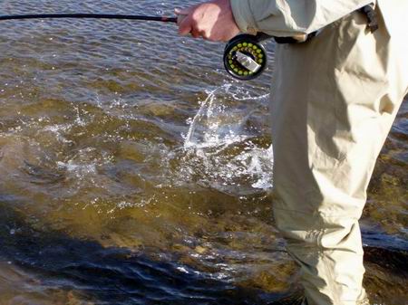 An dieser Stelle einige Tipps zur Fischerei: Fürs Fliegenfischen verwendeten wir Einhand-Ruten der Klassen 8-9 und um 9 Fuß Länge. Viergeteilte Reiseruten, die mit in den Koffer passen, sind von Vorteil, wenn man kein zusätzliches Rutenrohr mitschleppen möchte. |