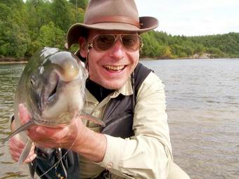 gutem Wasserstand rasch durchwandert wird, deshalb derzeit nicht unbedingt die besten Fangplätze bietet. Hier unten wird der Fluss auch schon ziemlich breit. Wieder einmal wird deutlich, dass Robert bei der Auswahl des Campstandorts und der dazugehörigen Fisch-Strecken mit viel Erfahrung eine sehr gute Wahl getroffen hat – die Angelplätze um das Camp herum sind alle innerhalb weniger Minuten per Boot zu erreichen, sie sind nicht zu groß, abwechslungsreich, überwiegend Treibholz- und Hängerfrei und deshalb bestens geeignet für’s Fliegen- und Spinnfischen. Hinzu kommen die einfach zu |
