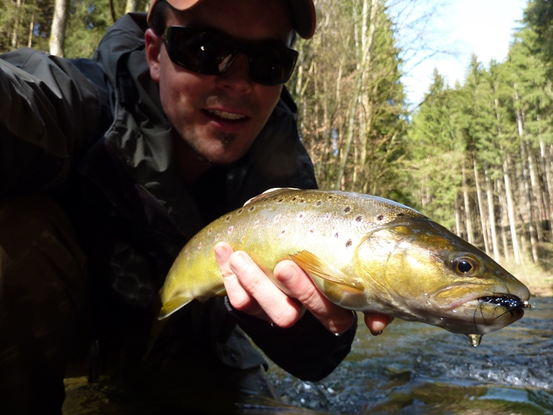 Das Gold des Odenwaldes Fliegenfischen im Grenzland zwischen Hessen, Baden und Franken Ein Gewässer-Report von Andreas Schmitt |