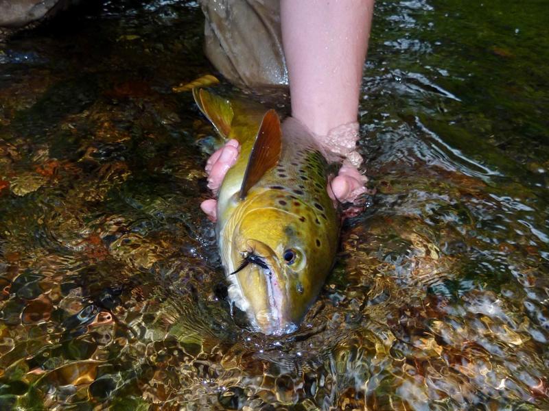 sind auf dem Vormarsch: Nicole mit einer schönen Regenbogenforelle