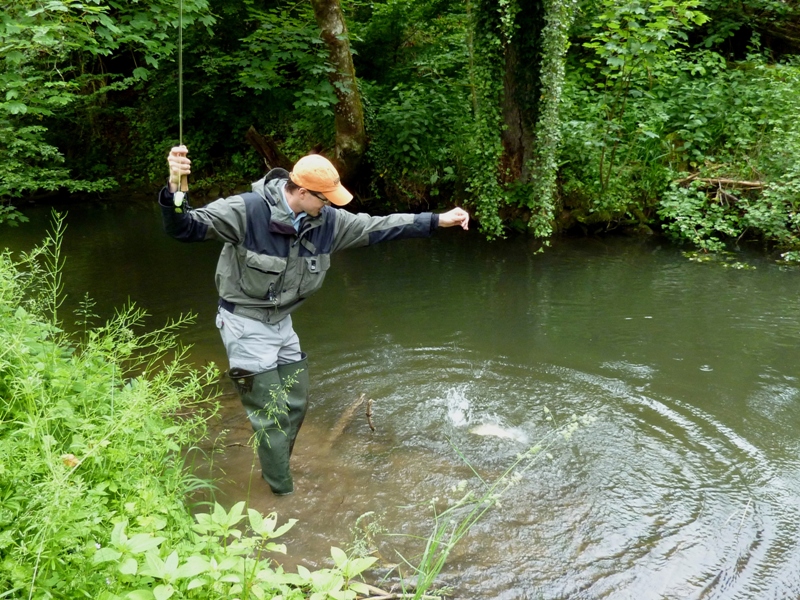 ich im klaren Wasser verfolge, wie der „Gumpenkönig“ aus seiner Wurzelhöhle