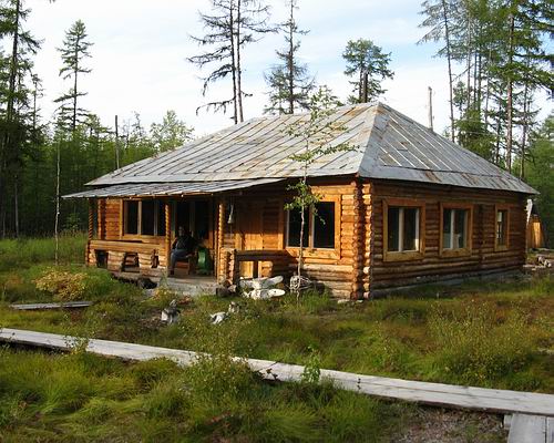 Youri, der Ureinwohner, hat schon alle Öfen geheizt und bringt mir eine Bärengalle!? “Du hattest ja letztes Jahr Magenschmerzen? Mach Dir einen Tee hiermit! Vorbei sind die Schmerzen!“ Viktor, der Campboss, kam gerade aus einer der beiden geheizten Saunas angelaufen und freut sich auf das Wiedersehen. Olga hatte schon (Multe)Beeren und Steinpilze gesucht und zusammen mit Sascha einen schönen Tisch vorbereitet. Aber, zu allererst ein Wodka. Austrinken, Baianai schreien, damit die Götter uns eine gute Fischerei bescheren und das Glas über den Kopf wegwerfen… Dann kommt eine herrliche Pilzsuppe, Brot mit Lachskaviar zwischendurch und Renntier-Gulasch mit Nudeln und frischem Gemüse aus Youri’s eigenem Anbau als Hauptgericht. Blaubeerkuchen und sonstige Süßigkeiten, mit oder ohne Tee schließen den Empfang ab. |