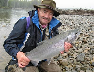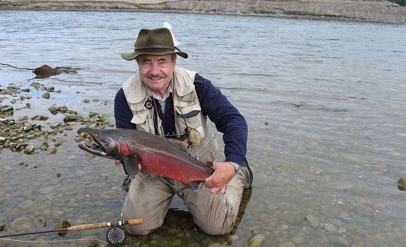 | Ein schöner Silberlachs im Laichkleid || Unten: Wim mit dem Abendessen |