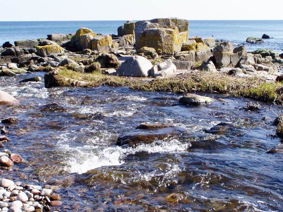 Impressionen einer Frühjahrsreise auf die dänische Ostseeinsel Bornholm im April 2004 (1): "Idyllische Bachmündung an der Norküste"