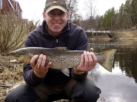 Elmar Heiming mit Meerforelle aus dem Eman-Gebiet/Süd-Schweden.